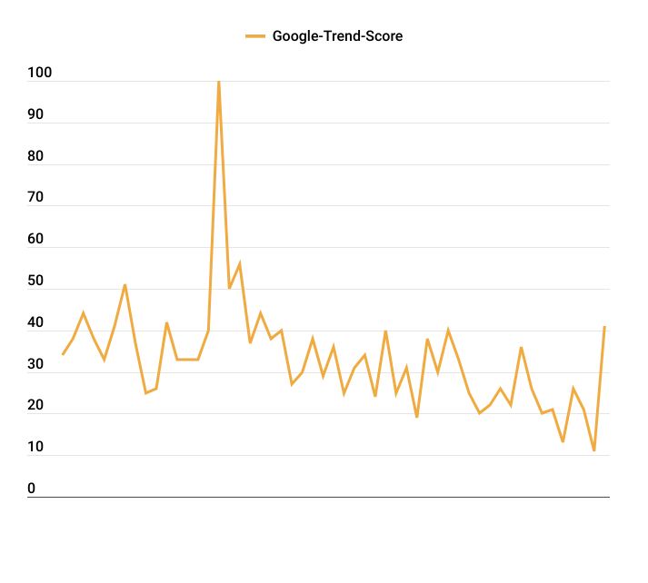 Im 12-Monats-Rückblick steigt der Trend-Score in Deutschland innerhalb kurzer Zeit von 11 auf 41. Solche Ausschläge treten häufig in Phasen starker Kursbewegungen auf und deuten auf wachsendes Interesse neuer Marktteilnehmer hin.