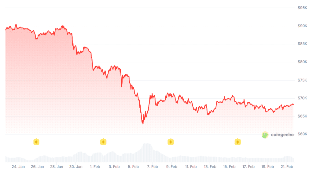 Zum Samstagabend, 21. Februar 2026, notiert Bitcoin bei 68.253 US-Dollar, Ethereum bei 1.981 US-Dollar und XRP bei 1,45 US-Dollar. Die Redaktion von boersen-parkett.de hat ChatGPT auf Basis der aktuellen Marktdaten um eine strukturierte Einschätzung für das laufende Jahr gebeten. Die KI skizziert mehrere klar voneinander abgegrenzte Szenarien – mit konkreten Kurskorridoren für 2026.