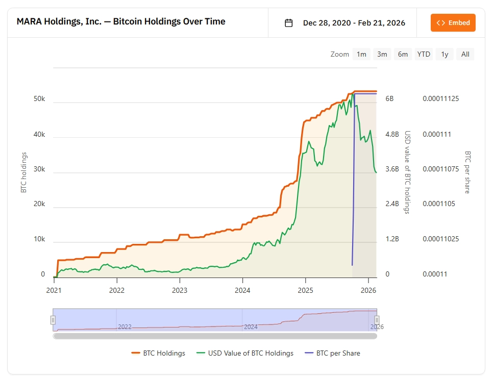 MARA Holdings gehört mit einem Bestand von 53.250 Bitcoin zu den größten börsennotierten Haltern der Kryptowährung weltweit und rangiert branchenweit auf Platz zwei unter den Public Companies. Diese Position verschafft dem Unternehmen zwar eine erhebliche Hebelwirkung auf steigende Kurse, erhöht jedoch zugleich die Bilanzsensitivität bei Rücksetzern.